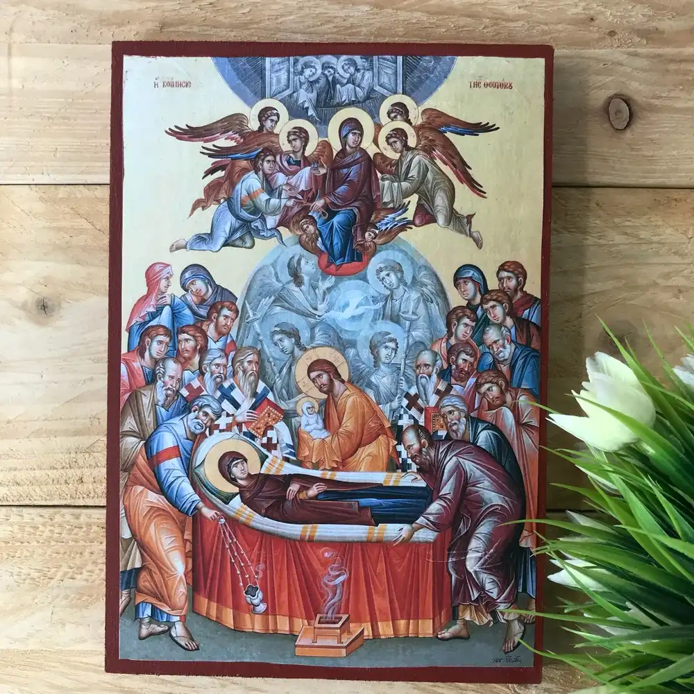 Dormition of the Virgin Mary – Handmade Greek Orthodox Wooden Icon