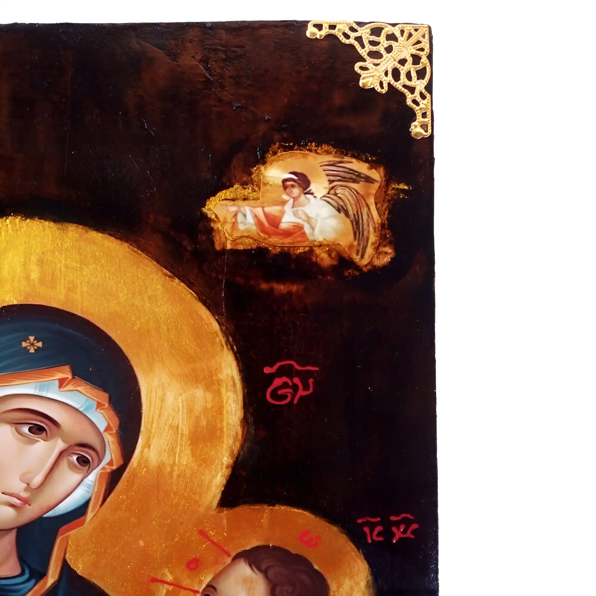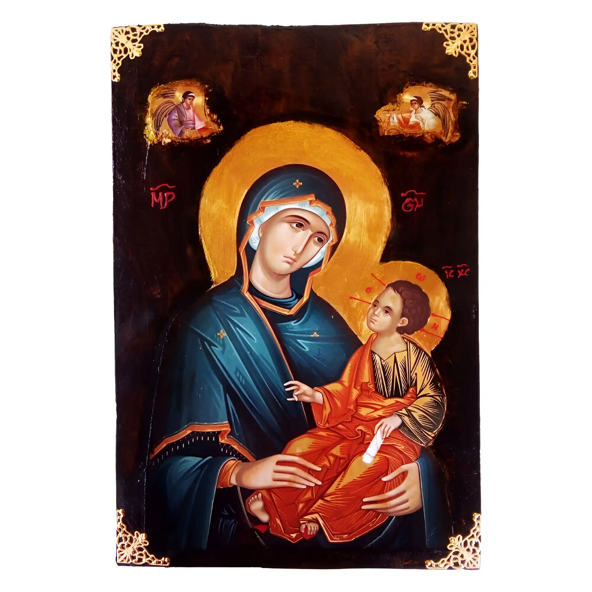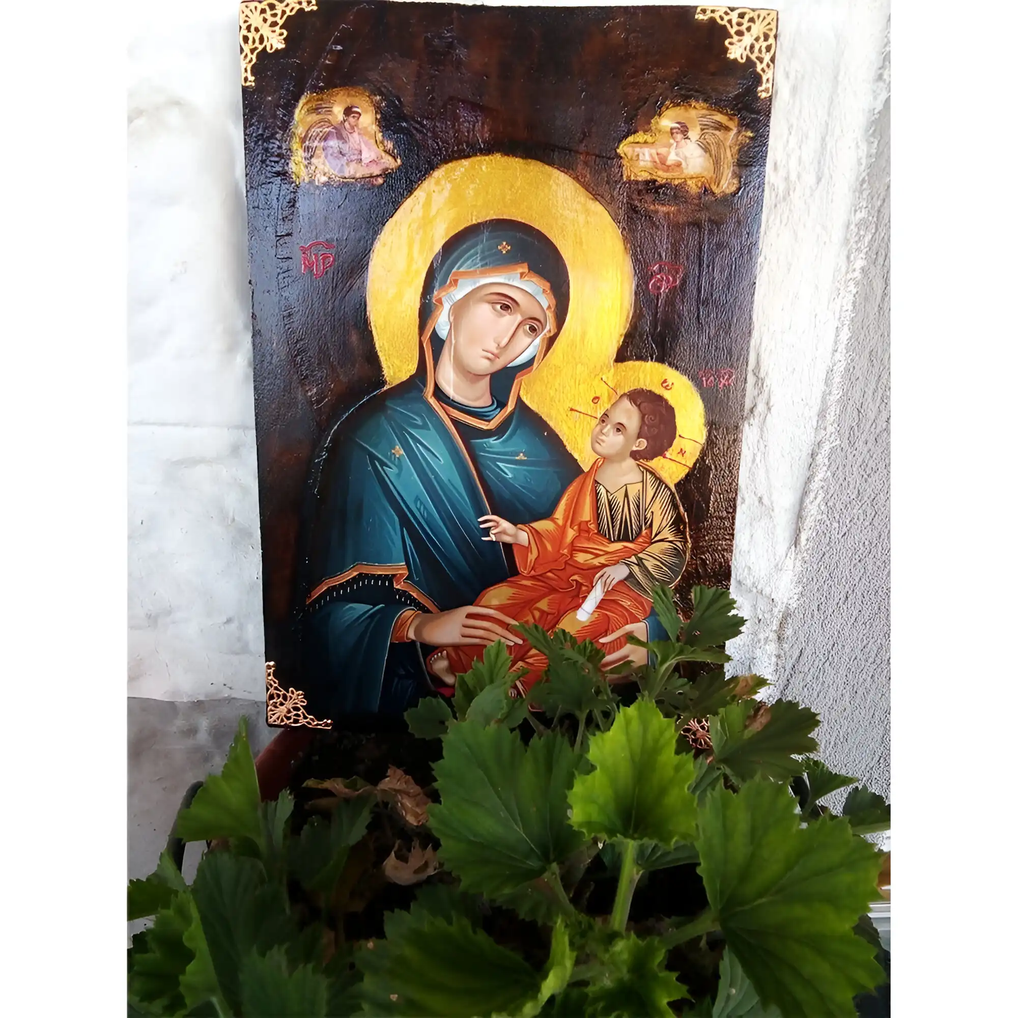 Beautiful handmade Greek Orthodox icon of the Virgin Mary (Panagia), crafted on wood in traditional Byzantine style. Ideal for home altar, prayer corner, or a thoughtful religious gift.