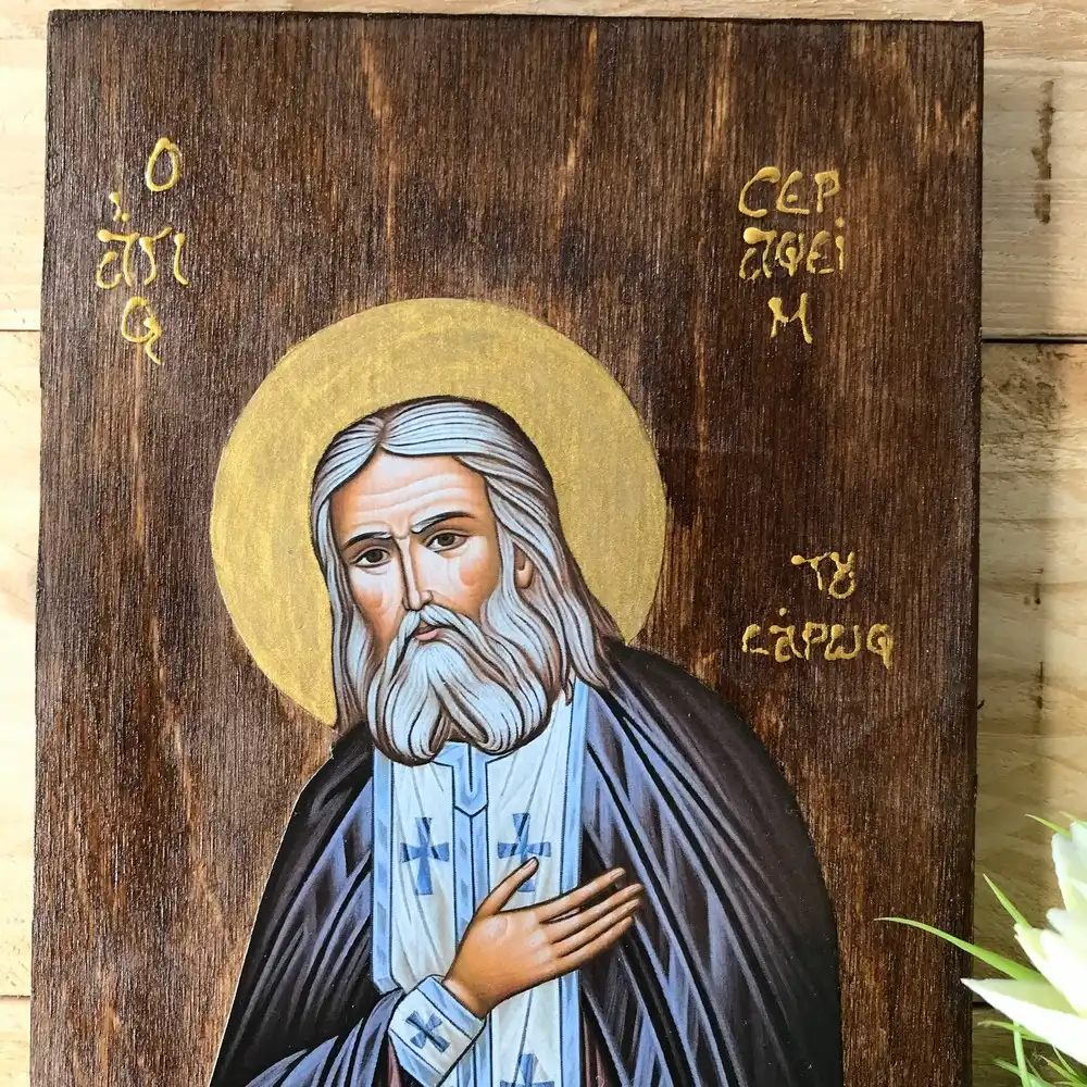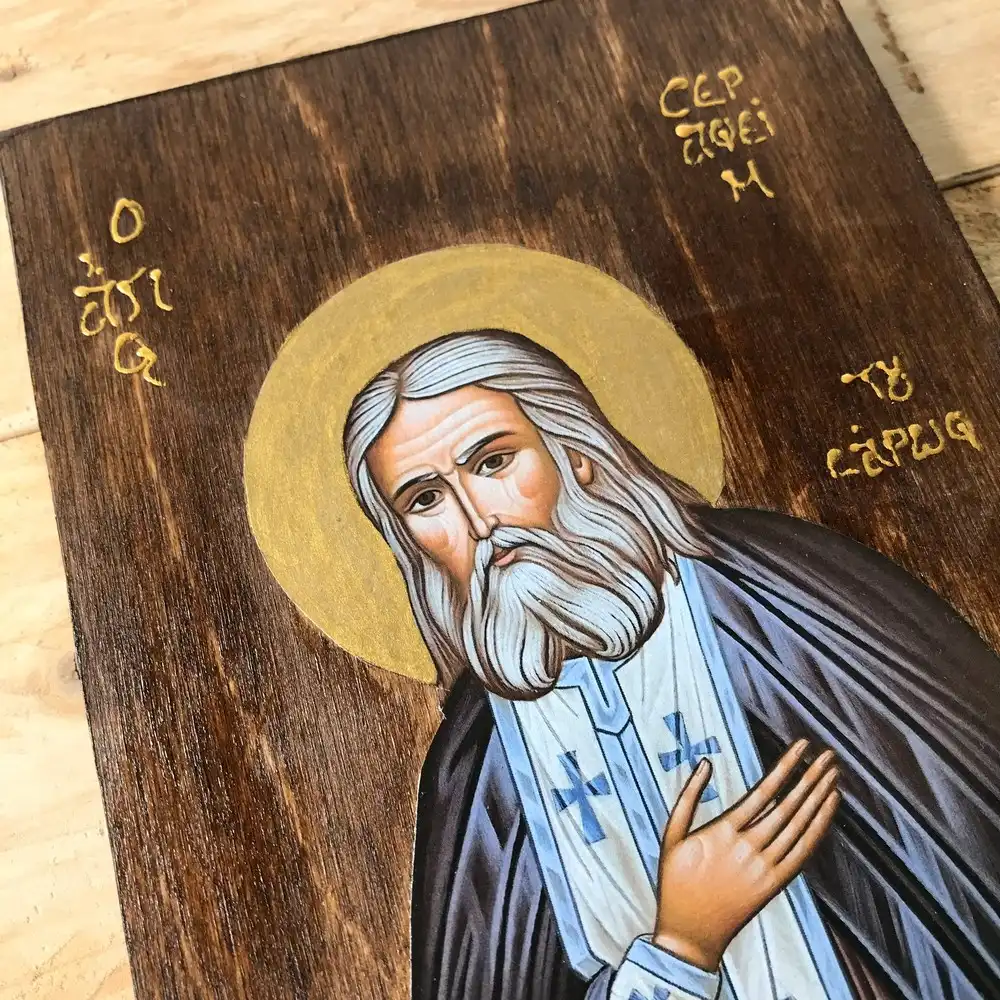 Handmade Orthodox Icon of Saint Seraphim of Sarov Religious Wall Art