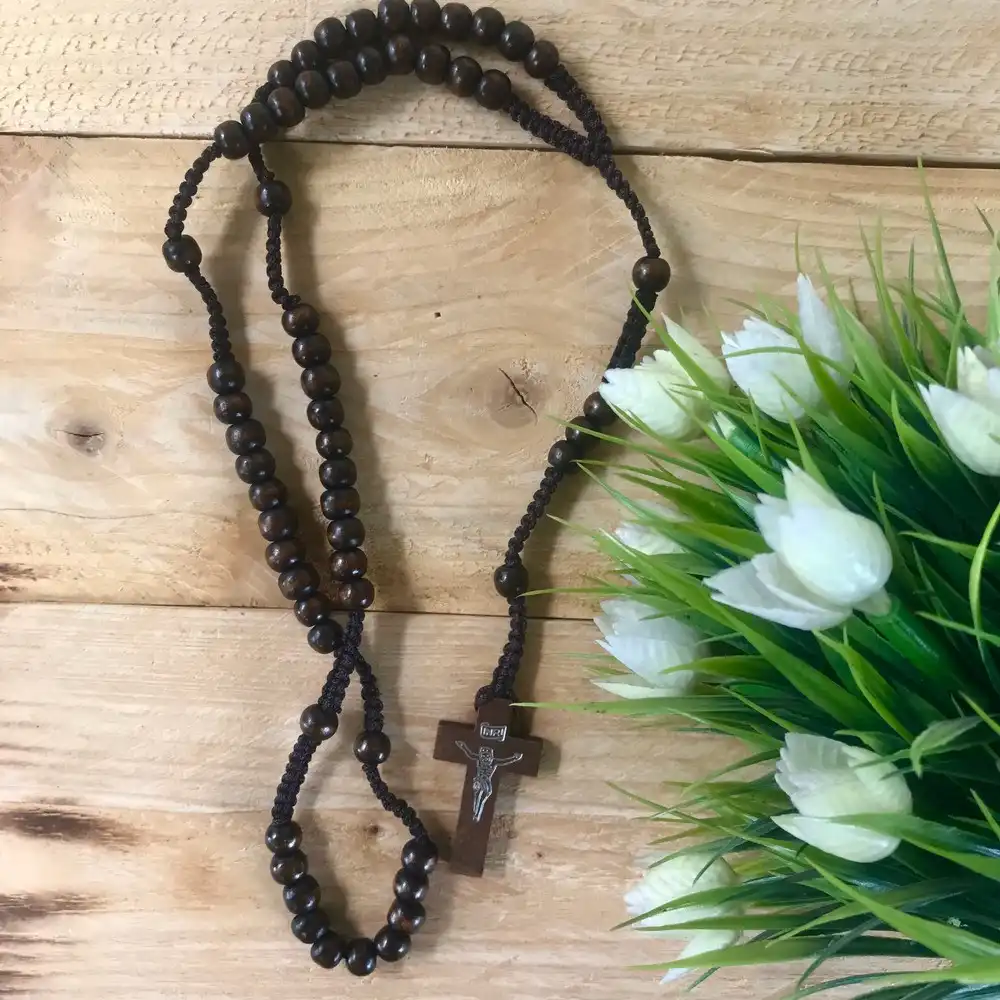 Wooden Cross Rosary Necklace | Wooden Beads Rosary | Christian Prayer Gift | Rustic Faith Jewelry