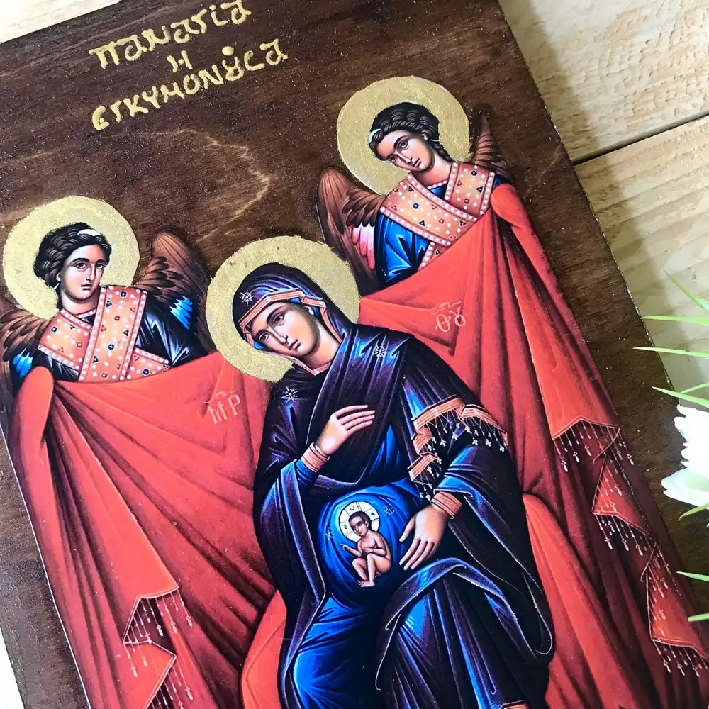 Handmade Icon of the Pregnant Virgin Mary – Byzantine Art, Spiritual Gift Greek Orthodox Wooden Icon Byzantine Icon Ιn Wood