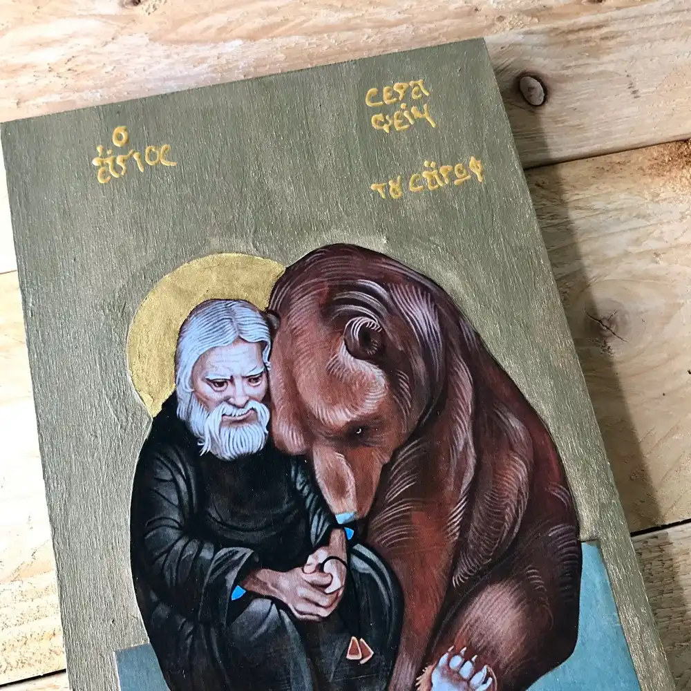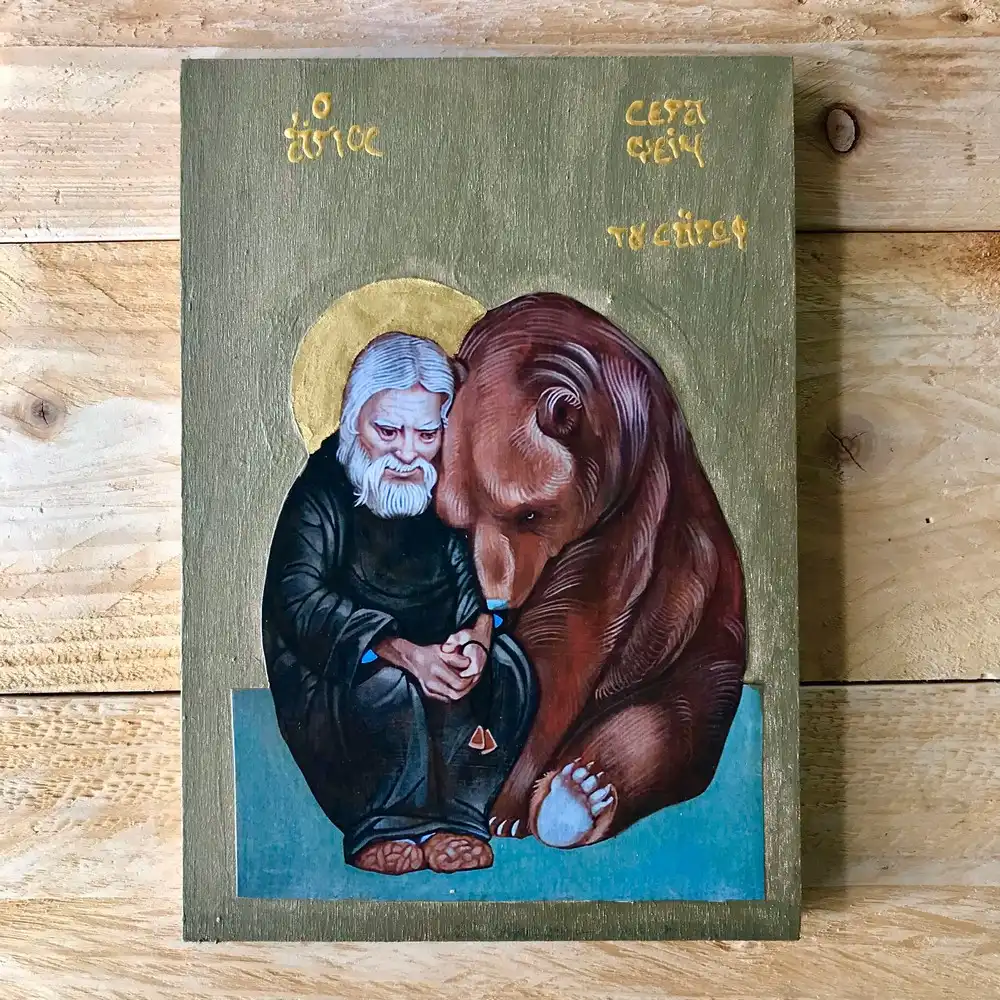 Handmade Orthodox Icon of Saint Seraphim of Sarov Religious Wall Art