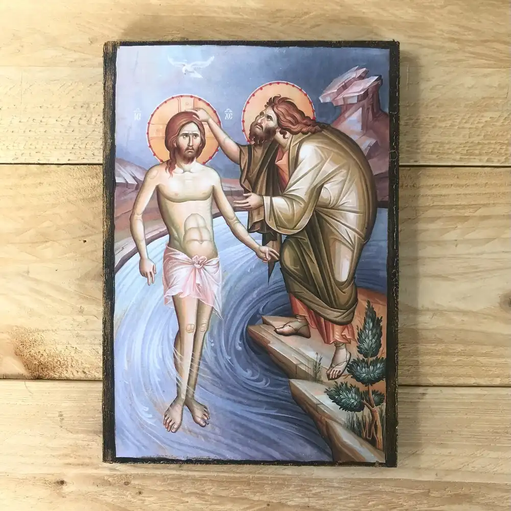 Handmade Theophany Icon Baptism of Jesus Christ Orthodox Christian Epiphany Gift