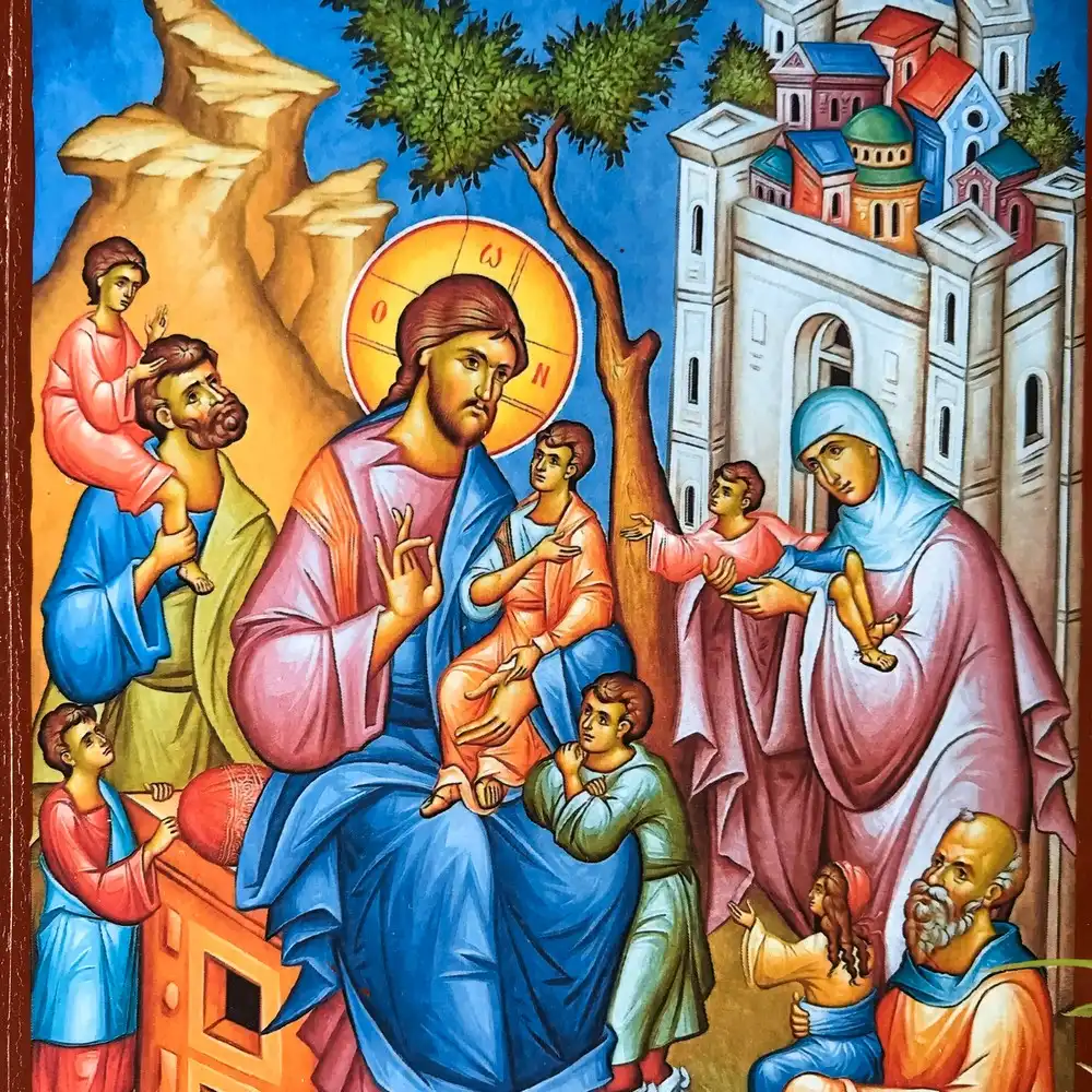 Handmade Wooden Icon of Jesus Christ Blessing the Children | Orthodox Christian Wall Art