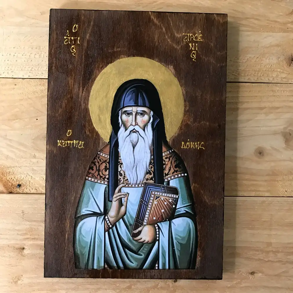 Handmade Wooden Icon of Saint Arsenios of Cappadocia – Greek Orthodox Religious Artwork & Christian Decor Sacred Art Christian Art