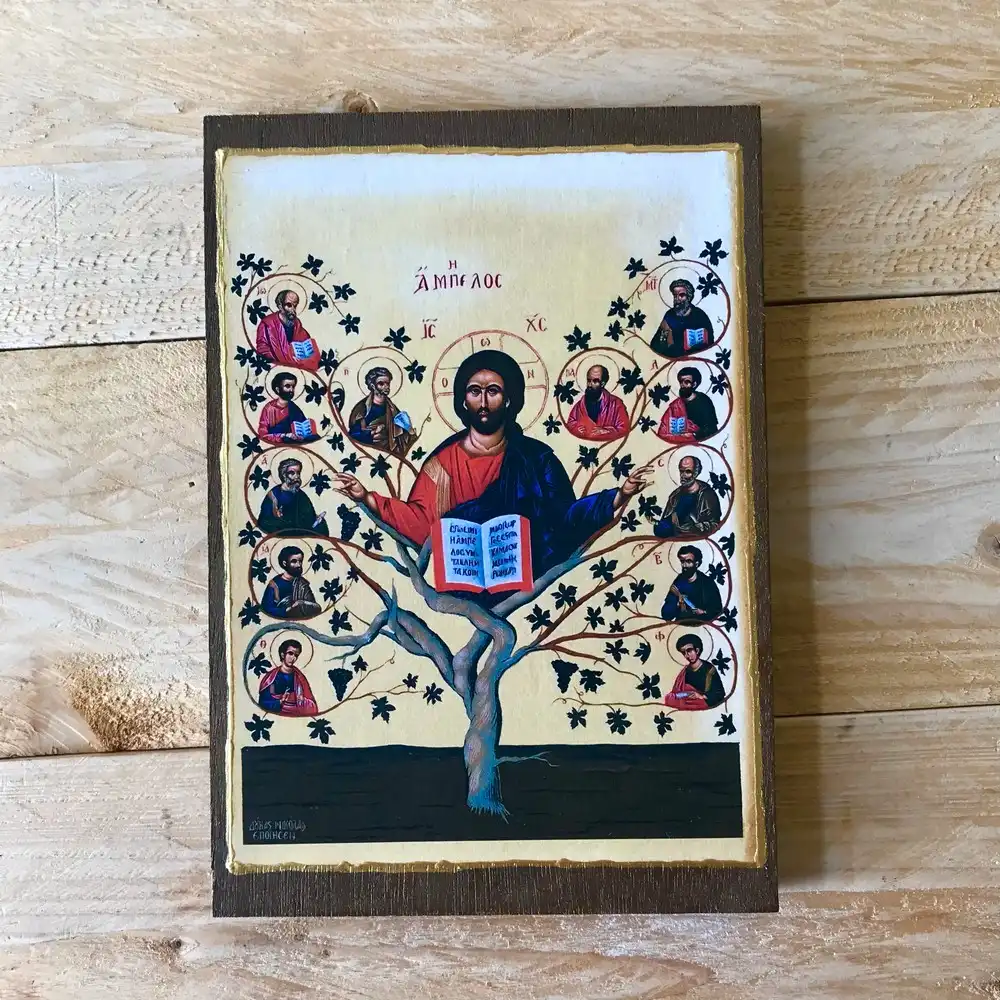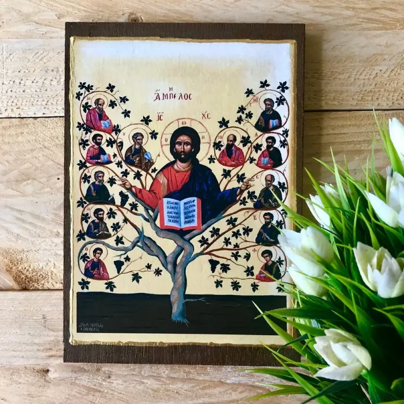 Handmade Wooden Icon of the True Vine with Christ and the Apostles Greek Orthodox Icon Christian Icon Sacred Art Icon Of Jesus