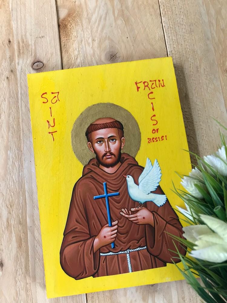 Handmade Wooden Saint Francis of Assisi Icon | Unique Catholic Religious Art | Wooden Saint Icon | Perfect Gift for Faith & Devotion