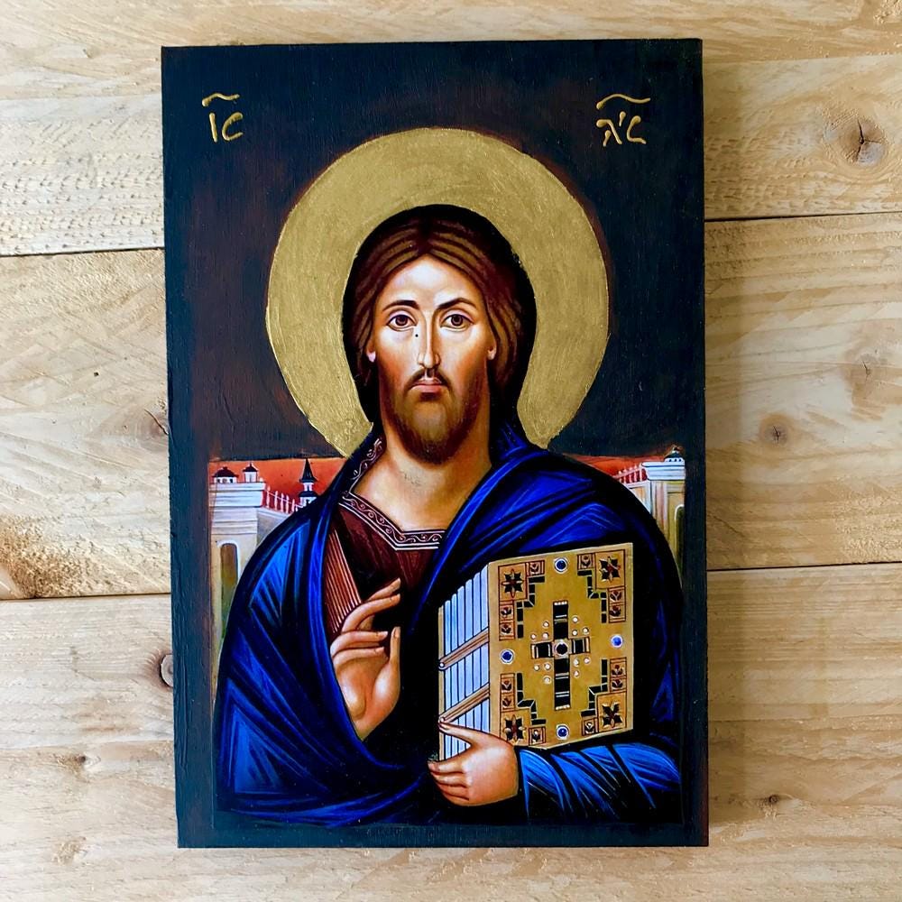 Jesus Christ of Sinai Handmade Wooden Greek Orthodox Icon / Handmade Orthodox Gift Sacred Art Jesus Christ Icon