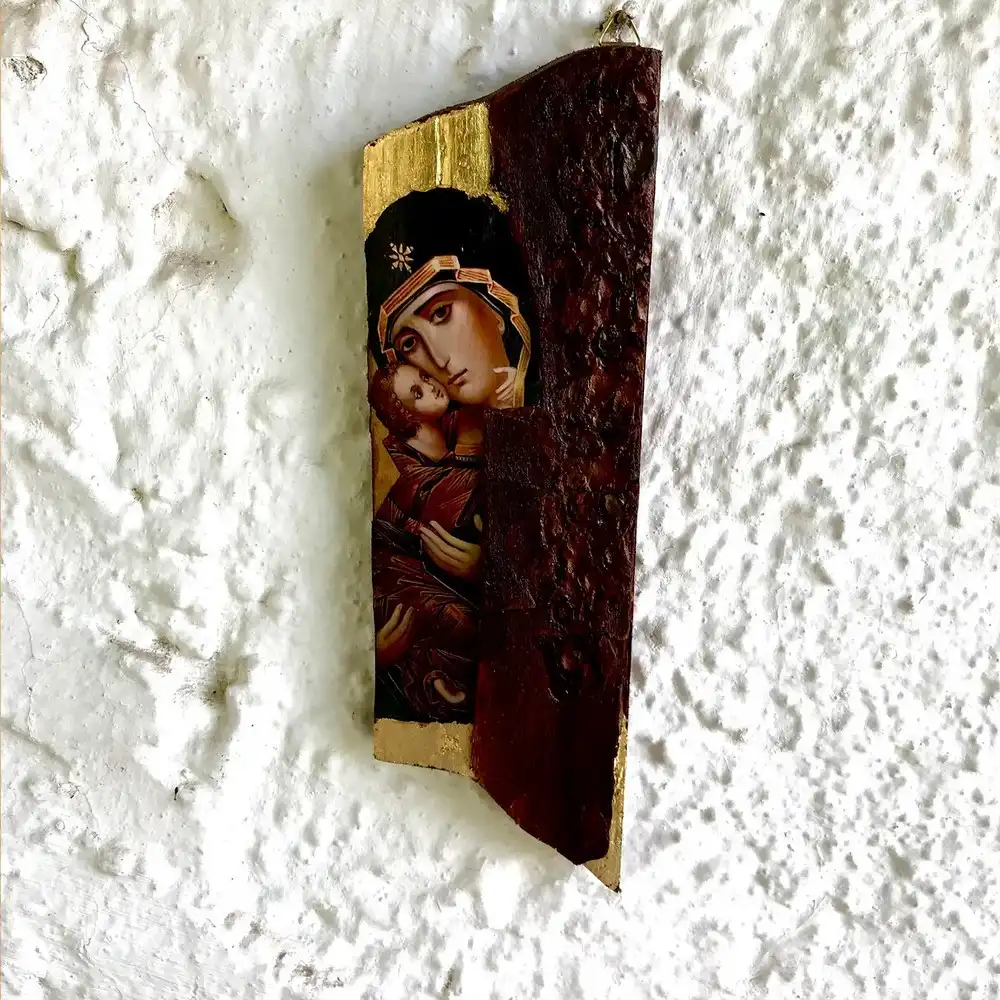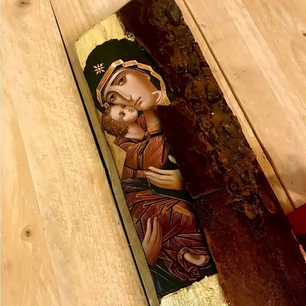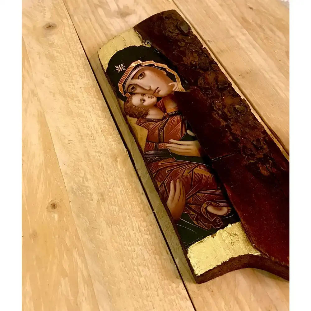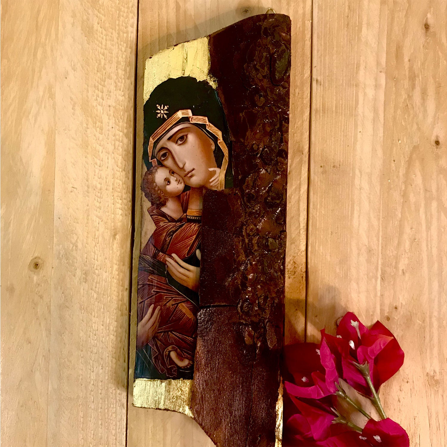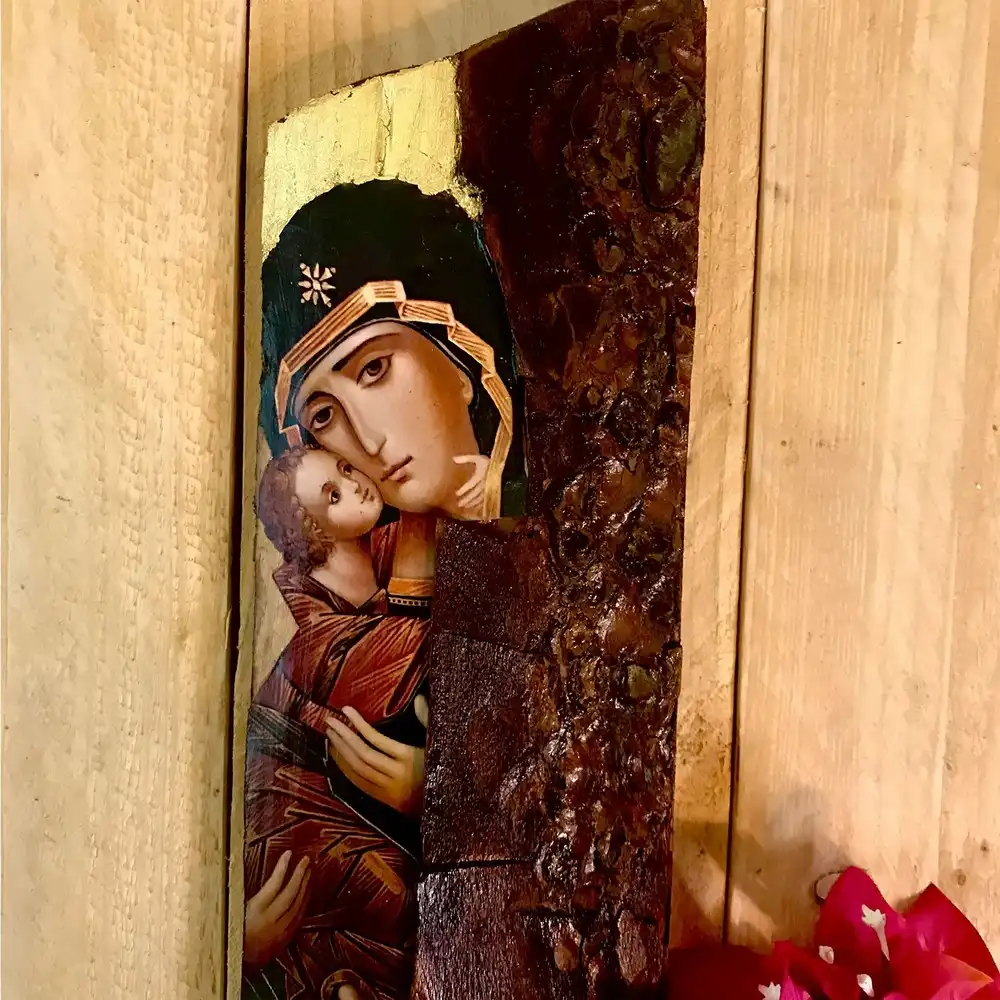 Handcrafted icon of Panagia, mother of Jesus. The icon is made of natural wood.