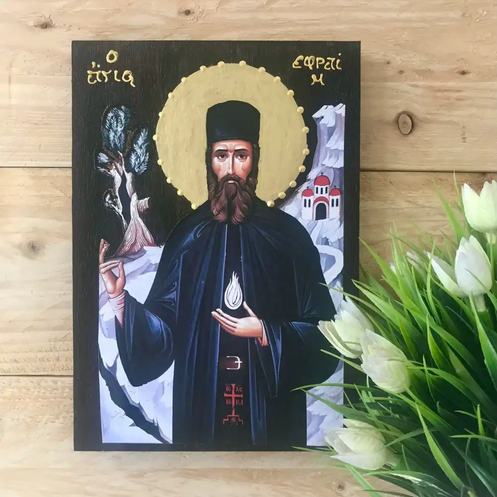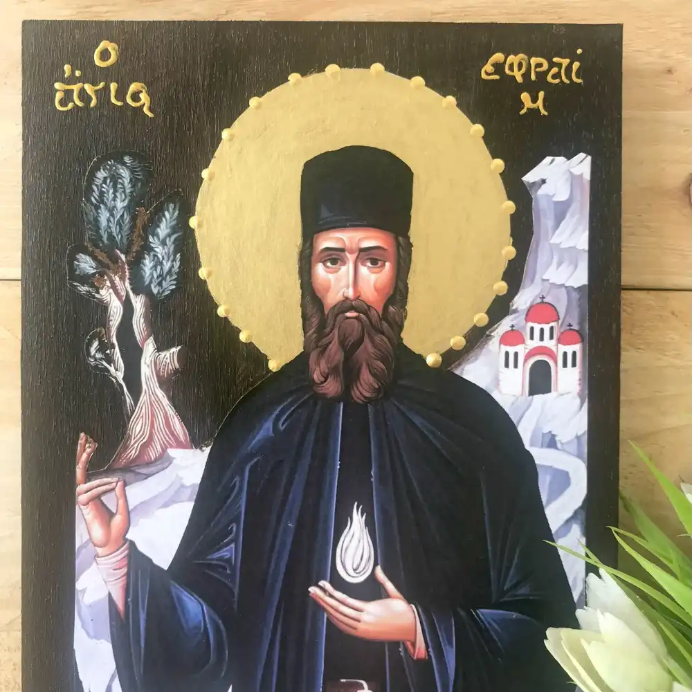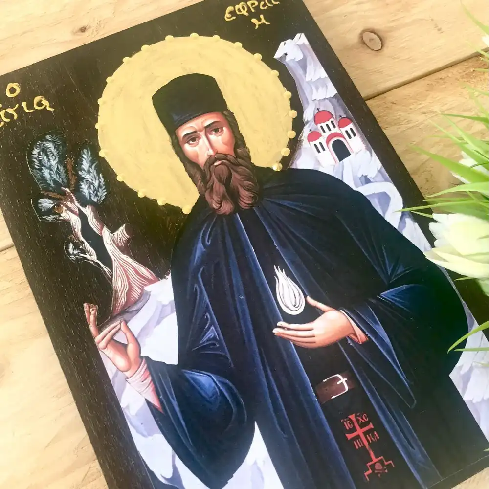 Saint Ephraim of Nea Makri Handmade Greek Orthodox Icon