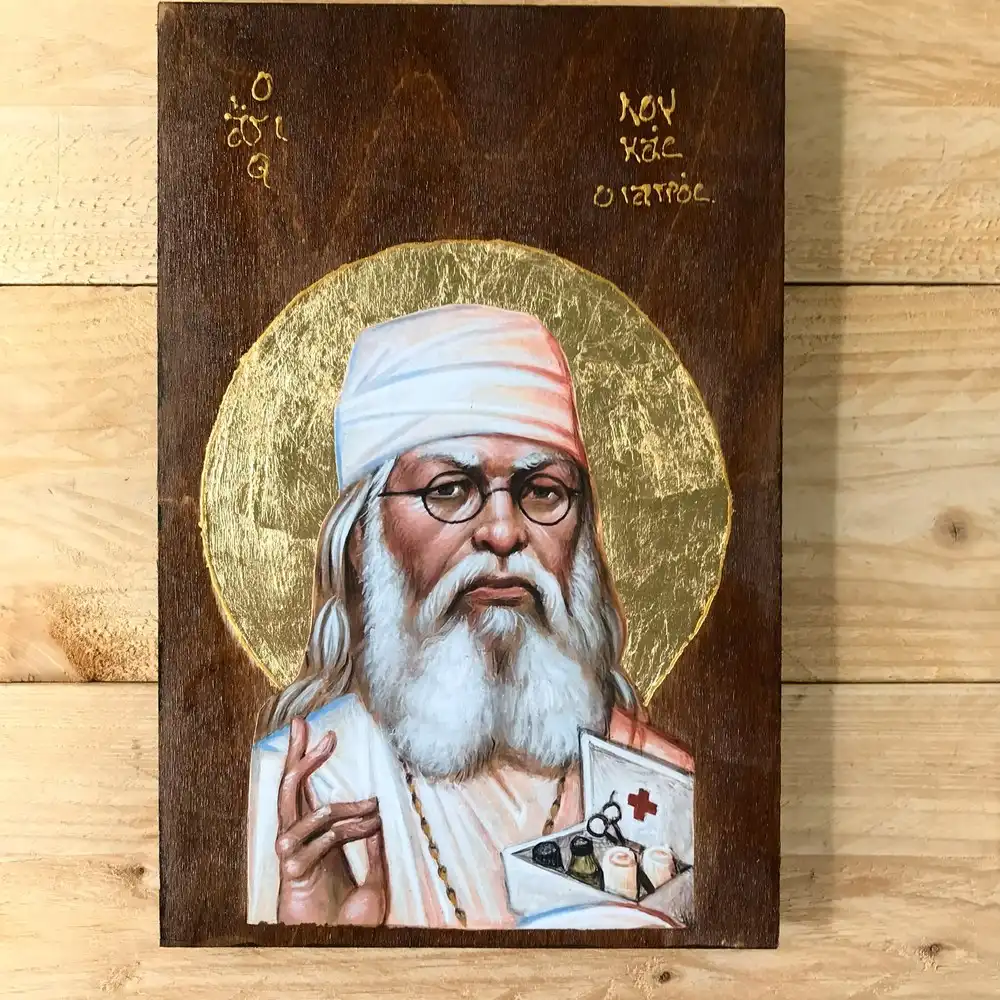 Honor the legacy of Saint Luke the Surgeon, a Ukrainian Orthodox Christian saint known for his healing miracles and courageous faith. This icon depicts Bishop Luke (formerly Valentin Voyno-Yasenetsky), a renowned surgeon, professor, and archbishop who was canonized in 1995. He is remembered for his devotion to the sick, his spiritual strength during persecution, and his selfless acts of charity.