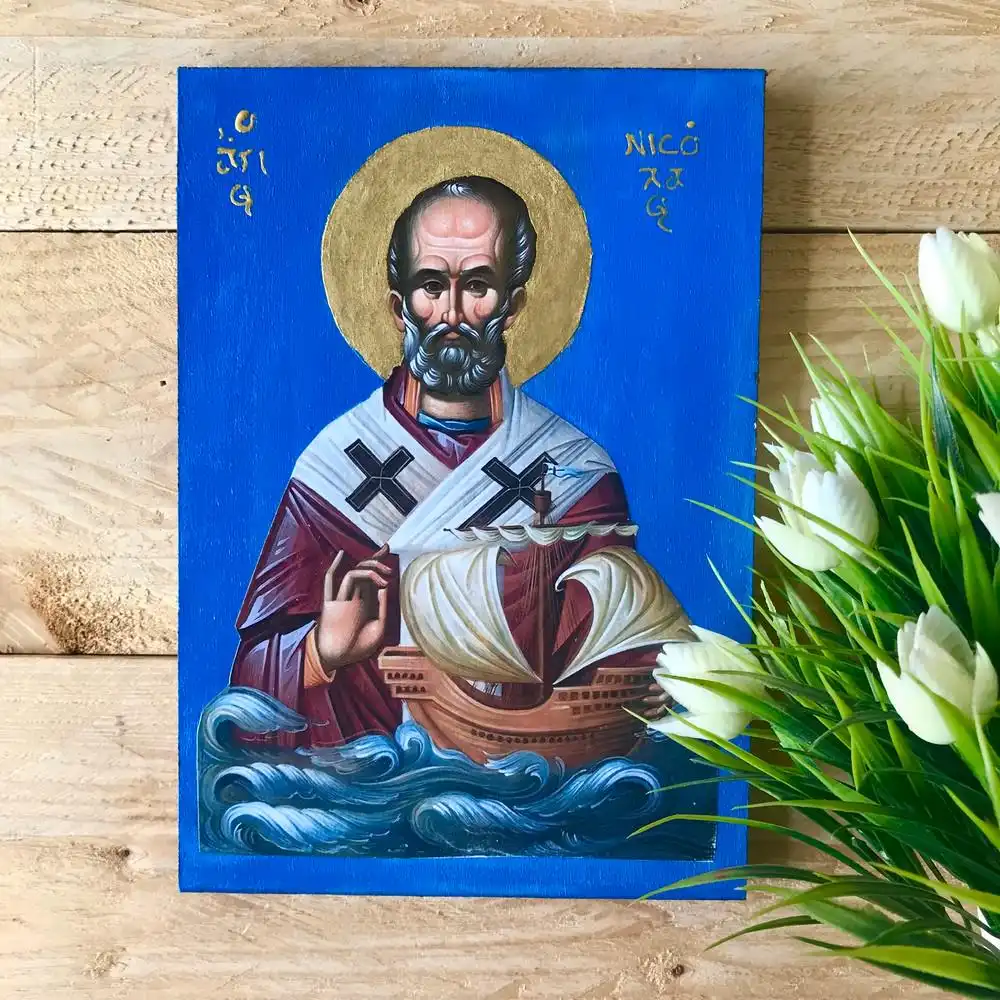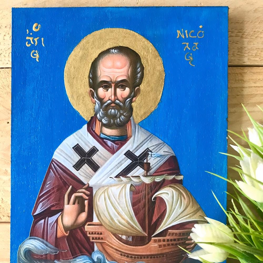 Saint Nicholas Handmade Icon/ Agios Nikolaos/ Greek Orthodox Icon / Handmade Greek Orthodox Christian Icon Christian art