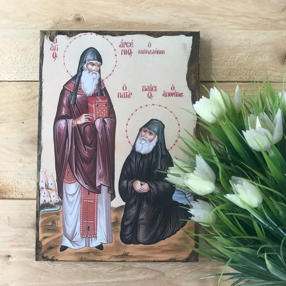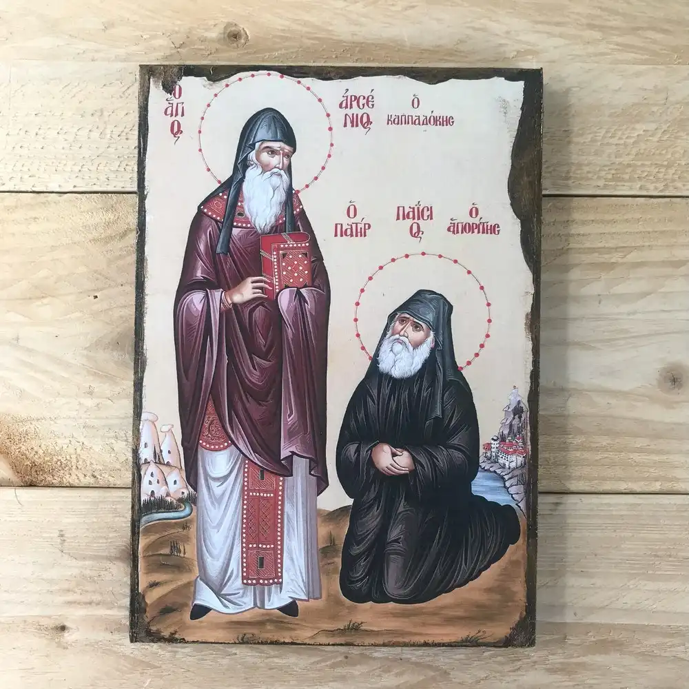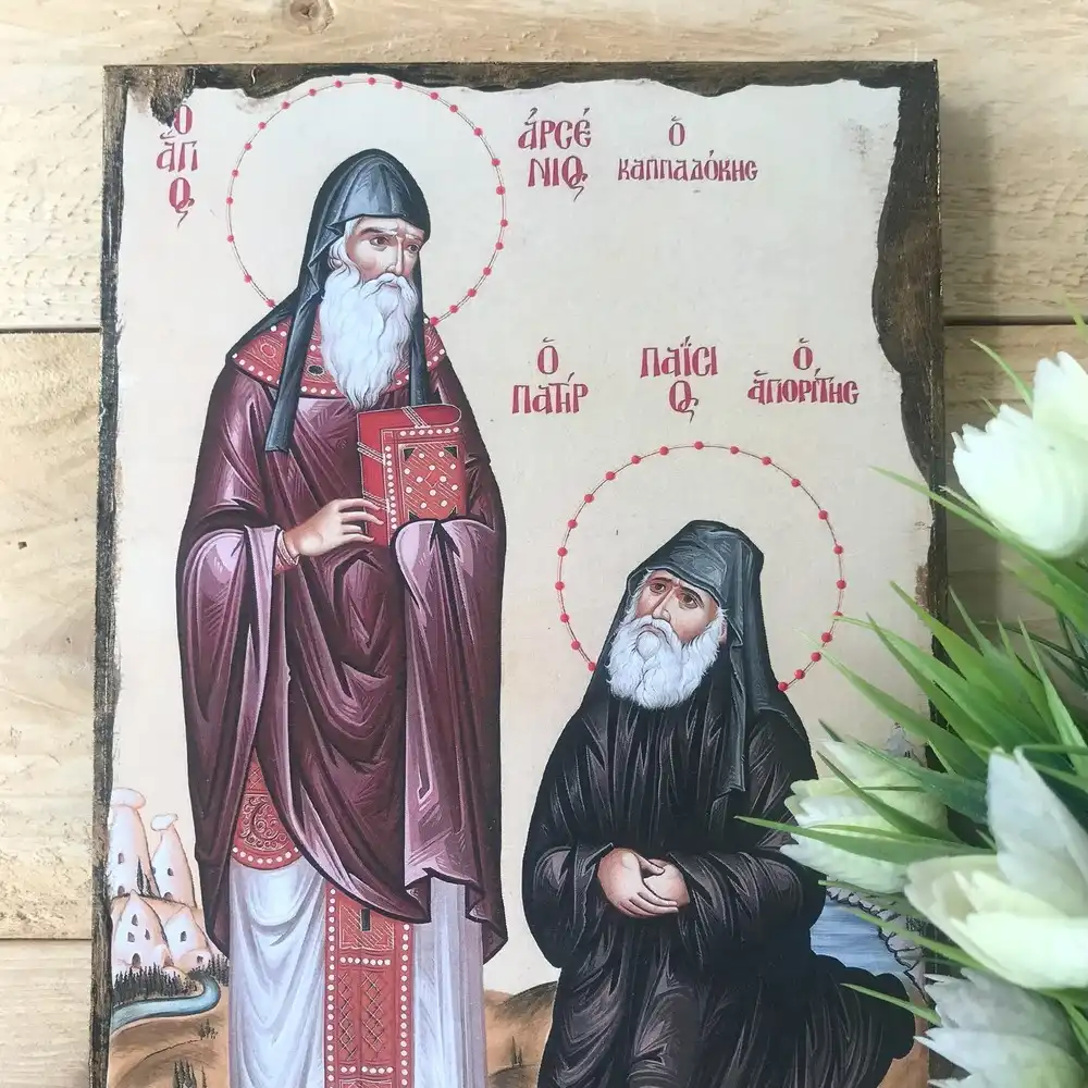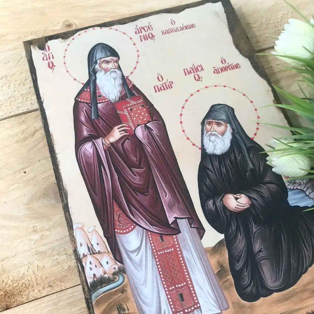 Saint Paisios & Saint Arsenios Orthodox Icon – Handmade Byzantine Christian Art