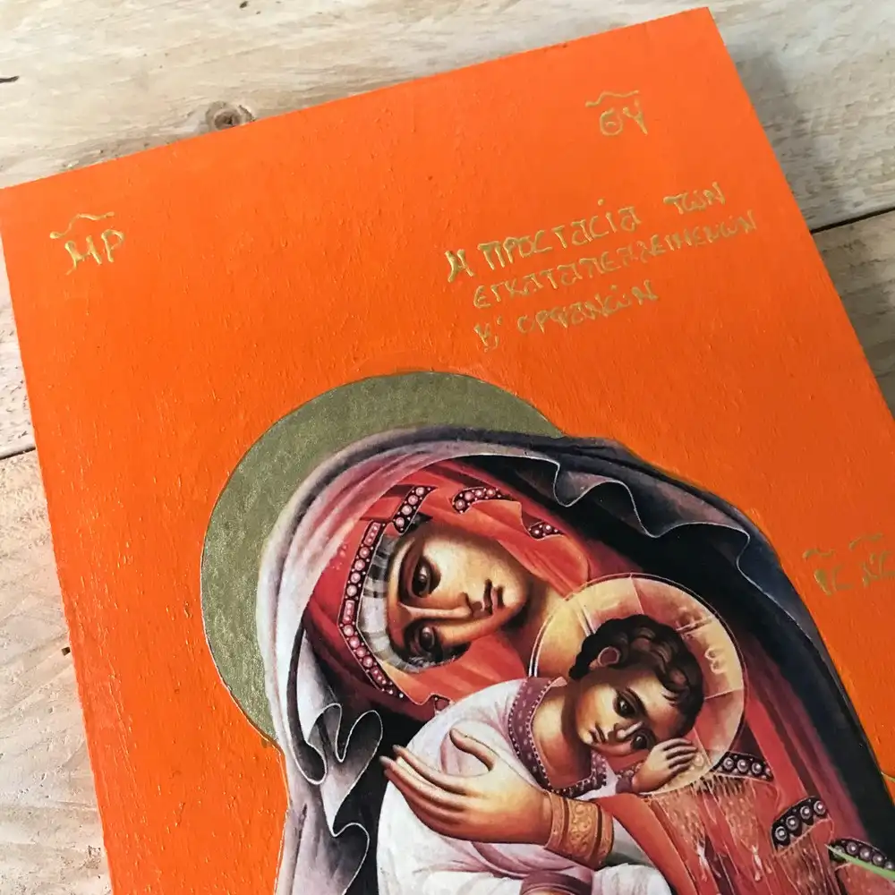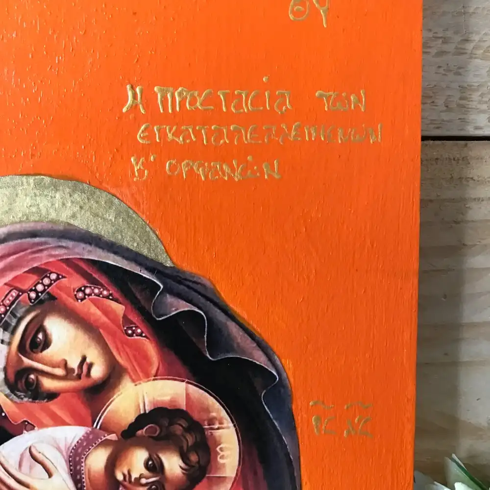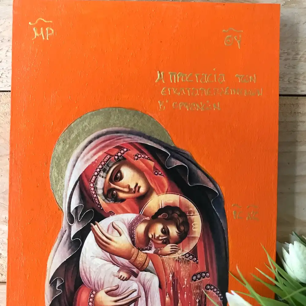 Embrace the divine comfort and protection of the Virgin Mary, the Protector of the Abandoned and Orphans. This handmade Greek Orthodox icon serves as a powerful reminder that our Blessed Mother is always by our side, offering refuge in times of anxiety, fear, and despair.